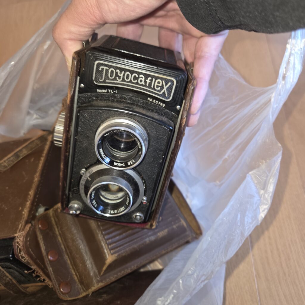 上のカメラは二眼レフカメラ。